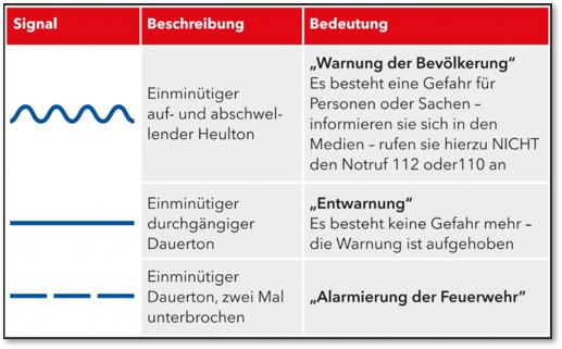 Für die Bevölkerung besteht keine Gefahr. Es wird gebeten, das Signal nicht mit dem Warnton für den Katastrophenschutz (ein einminütiger auf- und abschwellender Heulton) zu verwechseln, welcher auf eine ernste Gefahr hinweist.