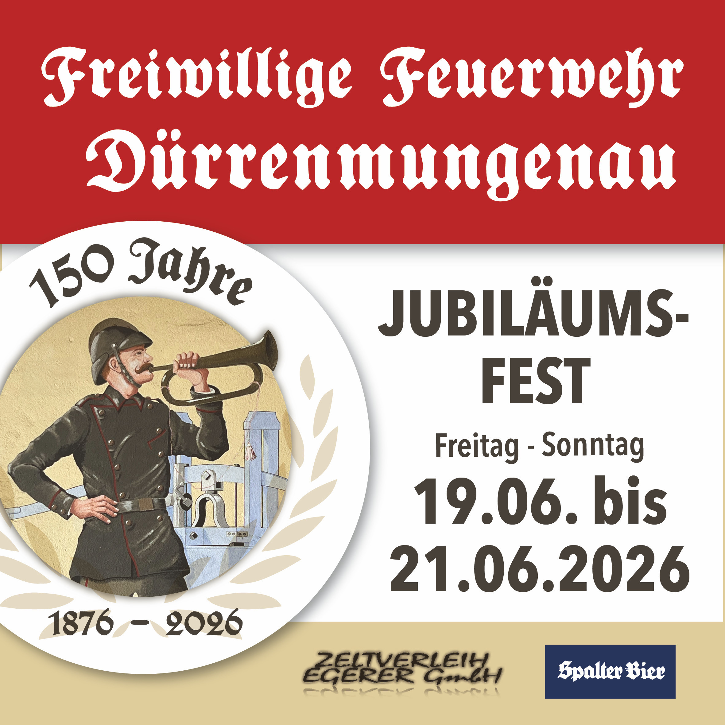 | 19. bis 21. Juni 2026 | 150 Jahre Freiwillige Feuerwehr Dürrenmungenau / Abenberg | Flyer |