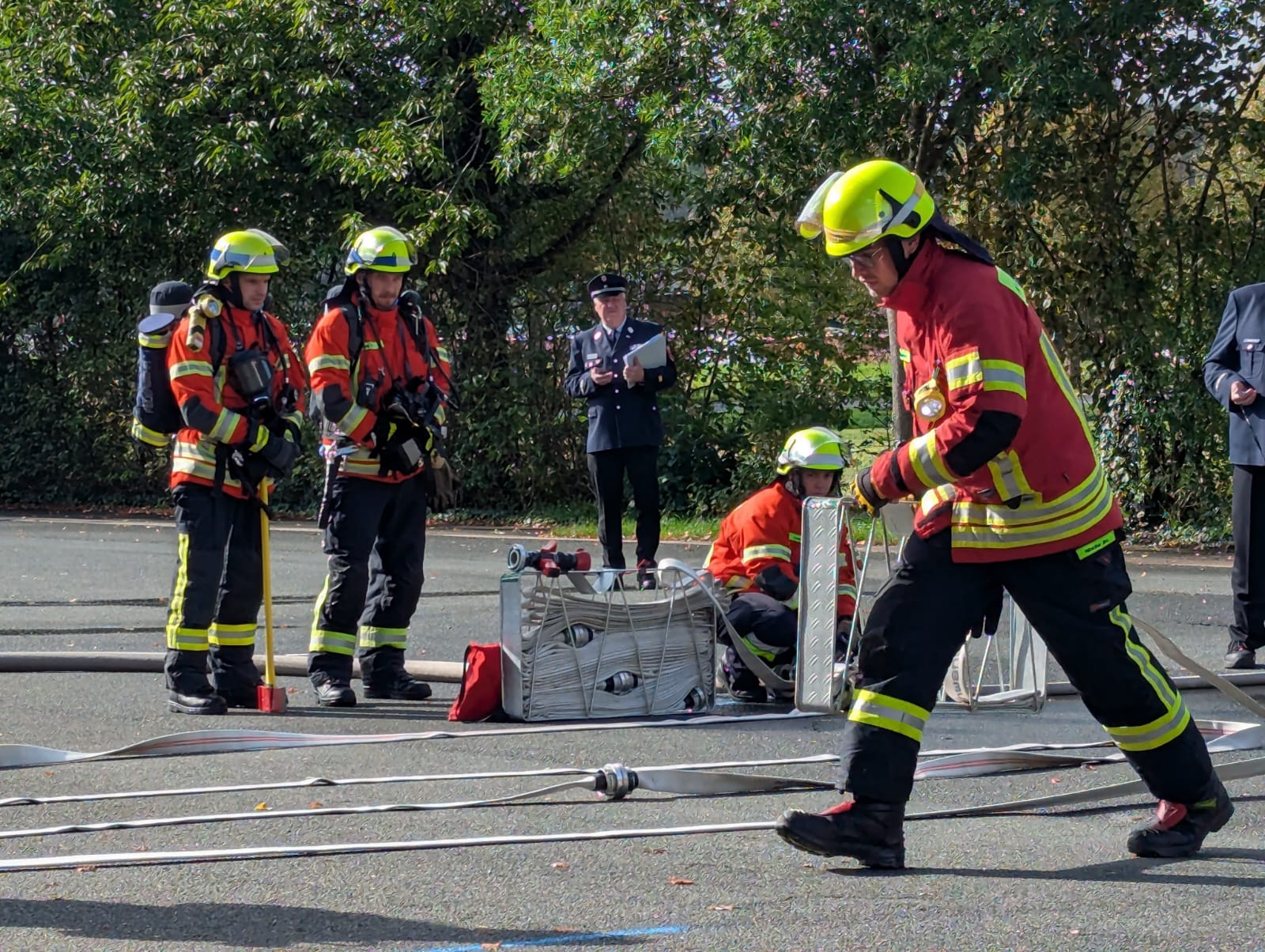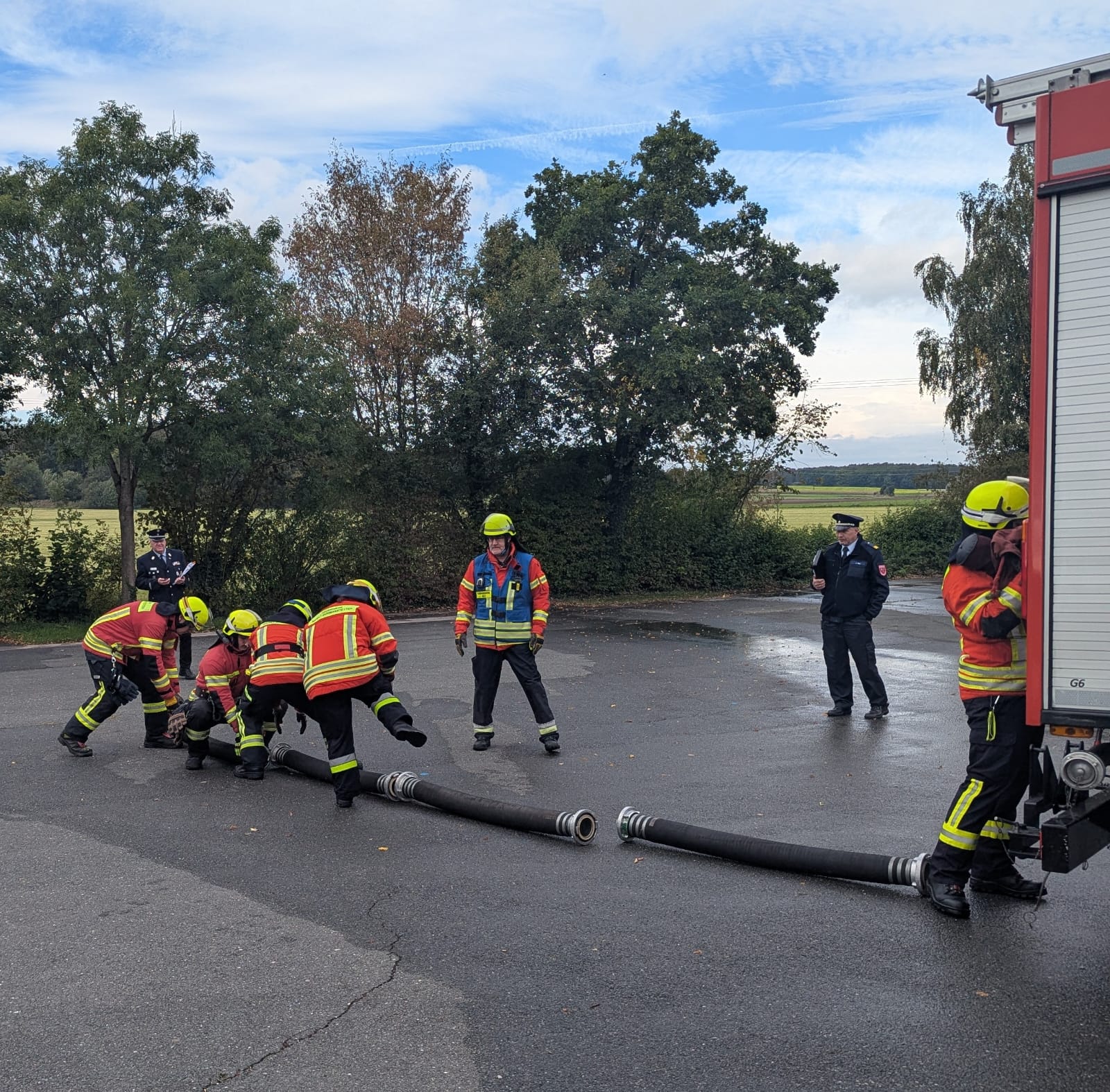 Insgesamt sechs Übungsabende hatten die Teilnehmerinnen und Teilnehmer zuvor investiert, um sich intensiv auf die Prüfung vorzubereiten. Die Variante 3 der Leistungsprüfung verlangt den Einsatz unter Atemschutzbedingungen – eine besondere Herausforderung, die sauberes, sicheres und koordiniertes Arbeiten trotz erhöhter körperlicher Belastung erfordert. Beide Gruppen meisterten die Aufgaben souverän und konnten die Prüfung mit Erfolg abschließen.